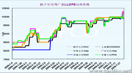 圖為揚子石化等廠家LLDPE出庫價格對比圖。(圖片來源:卓創資訊)