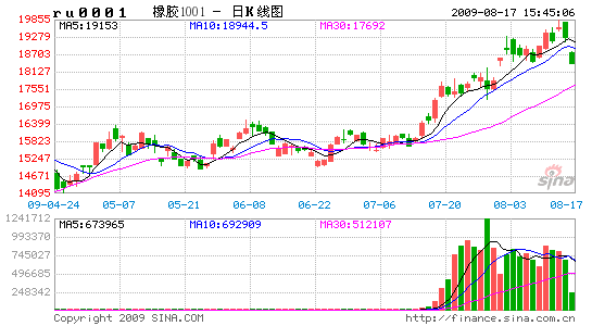 表1、上海期貨交易所天然橡膠周成交數據表(20090810-20090814)