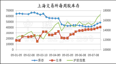 圖為上海交易所每周膠庫存走勢圖。(圖片來源:中瑞金融)