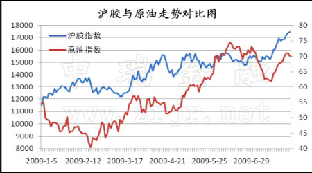 圖為滬膠與原油走勢對比圖。(圖片來源:中瑞金融)
