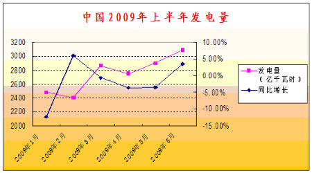 圖為中國2009年上半年發電量走勢圖。(圖片來源:首創期貨)