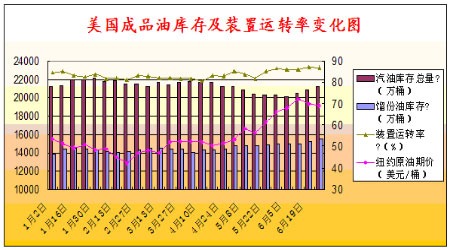 圖為美國成品油庫存及裝置運轉率變化圖。(圖片來源:首創期貨)