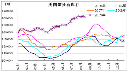 圖為美國餾分油庫存走勢圖。(圖片來源:北京中期)