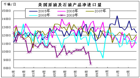圖為美國原油及石油產品凈進口量走勢圖。(圖片來源:北京中期)
