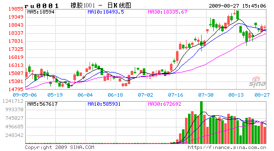 8月份,滬膠經歷了大幅的震蕩,月初,在各國經濟形勢向好、美元下滑及國際原油從68美元漲至74美元一線等利好因素提振,商品市場整體出現快速的拉漲,躍上了一個新的整理平臺,資金積極入市炒作,滬膠突破18000元一線,強勢上行,雖然有小幅的震蕩,但整體表現出易漲難跌的局面,13日滬膠一度漲至19850元高位,逼近20000元關口。但其后,受國內股市的連續下滑和一些宏觀經濟數據表現不如預期等打壓,商品市場出現了大范圍的深幅重挫,17日國內期貨市場有7大品種出現跌停,滬膠也在其列,此后幾日,滬膠連續大幅下行,跌破18000元之后最低曾至17555元。近期受美歐等經濟數據向好提振,滬膠暫時擺脫弱勢整理,在18000元上方震蕩整理。