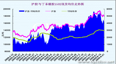 圖十六:滬膠與丁苯橡膠1502現(xiàn)貨價(jià)格
