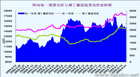 圖十七:天然橡膠標(biāo)一與順丁橡膠現(xiàn)貨價(jià)格