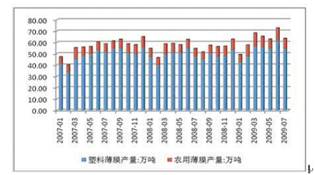圖為塑料薄膜與農用薄膜產量走勢圖。(圖片來源:中瑞金融)