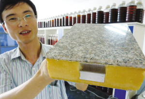 昨日,紹興縣華創聚氨酯公司的科技實驗室里,科研人員正在開發新型聚氨酯節能裝飾一體化板材,保溫隔熱效果是現在磚墻的50倍。該項目正在申報省級科技新產品,在節能環保的大背景下,產品應用前景廣闊。