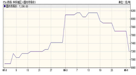 圖四:最近2個月華東地區PTA現貨市場價格走勢