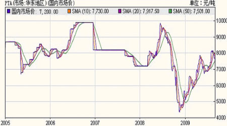 圖五:最近5年華東地區PTA現貨市場價格走勢