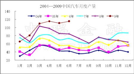 圖為中國汽車月度產量走勢圖。(圖片來源:中瑞金融)