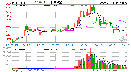 進入9月以后,由于國際原油價格的反復行情和國內前期化工類產品的大幅下挫,市場中出現了部分的抄底多頭資金,價格也因此受到支撐出現盤整行情。其中PVC主力合約保持在6900一線,遠期合約穩定在7000以上;LLDPE主力從10300回升到10400,遠期合約在10600以上;PTA合約基本保持在7000以上。