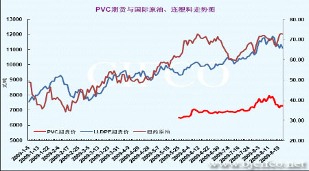 國際原油是生產(chǎn)PVC的源頭之一,但由于國內(nèi)PVC主要由電石法生產(chǎn),所以原油價(jià)格與PVC價(jià)格的關(guān)聯(lián)度不大。LLDPE作為五大合成樹脂聚之一乙烯產(chǎn)品的一種,與PVC之間存在一定的相關(guān)性,數(shù)據(jù)顯示,上市以來,連塑料與連PVC期貨的相關(guān)系數(shù)達(dá)到了0.95以上,顯示了極為密切的關(guān)系。