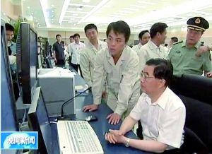 胡錦濤總書記在獨山子石化公司百萬噸乙烯控制中心視察
