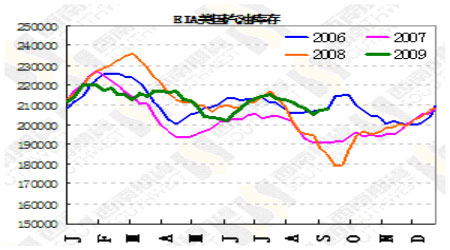 圖為EIA美國(guó)汽油庫(kù)存走勢(shì)圖。(圖片來(lái)源:西南期貨)