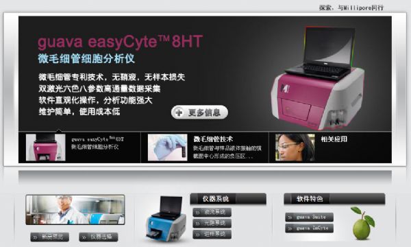 今年初,密理博成功收購了Guava Technologies后,又對“guava 微毛細管細胞分析平臺”進行了創新和升級。為了讓更多的用戶體會新一代流式技術帶來的科技震撼,Millipore推出了中國第一個以微毛細管技術為核心的細胞分析平臺。