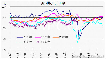 圖為美國煉廠開工率走勢圖。(圖片來源:北京中期)