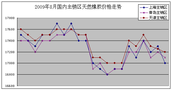 國(guó)內(nèi)主銷區(qū):八月份上海市場(chǎng)國(guó)產(chǎn)膠平均價(jià)格為17271元/噸,比上月上漲1778元/噸,最高價(jià)為17700元/噸,最低價(jià)為16800元/噸;青島市場(chǎng)平均價(jià)格為 17243元/噸,比上月上漲1780元/噸,最高價(jià)為17600元/噸,最低價(jià)為16800元/噸;天津市場(chǎng)平均價(jià)格為17355元/噸,比上月上漲 1809元/噸,最高價(jià)為17500元/噸,最低價(jià)為16900元/噸。