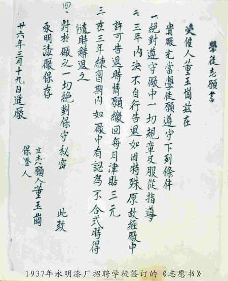 30年代-永明漆廠的《學徒志愿書》