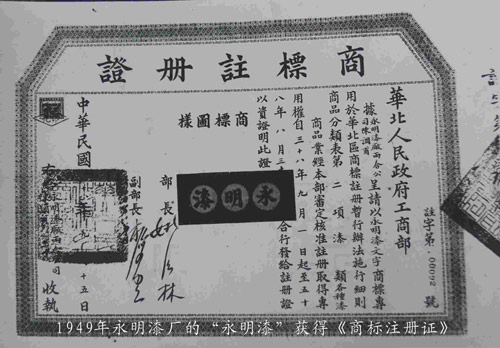 40年代-永明漆廠的《永明漆商標注冊證》
