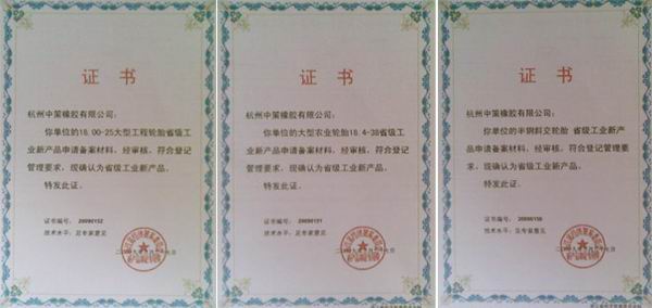 近日,杭州中策橡膠有限公司旗下的“18.00-25大型工程輪胎”、“大型農業輪胎18.4-38”及“半鋼斜交輪胎”三項產品,通過了浙江省經濟貿易委員會的省級工業新產品項目鑒定。