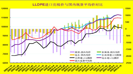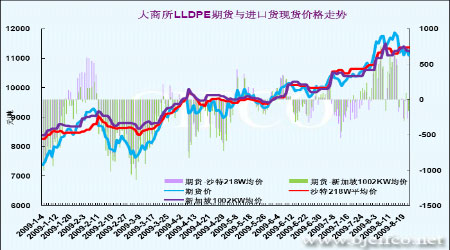圖二十三: LLDPE期貨與進口現貨價格走勢圖
