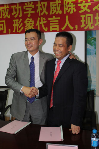 惠陽千葉松聯(lián)手成功學大師陳安之共筑輝煌(左為陳安之,右為千葉松董事長何愛輝)