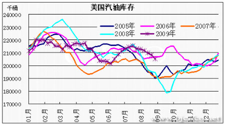 圖為美國汽油庫存走勢圖。(圖片來源:北京中期)