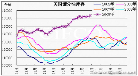圖為美國餾分油庫存走勢圖。(圖片來源:北京中期)