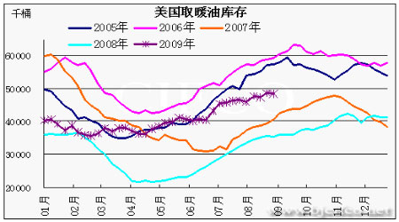 圖為美國取暖油庫存走勢圖。(圖片來源:北京中期)