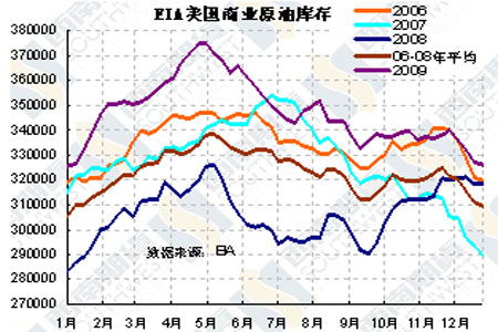 圖為EIA美國商業(yè)原油庫存走勢圖。(圖片來源:西南期貨)