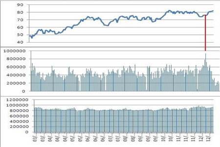圖3:美國原油期貨09年價格、成交量和持倉量變化圖
