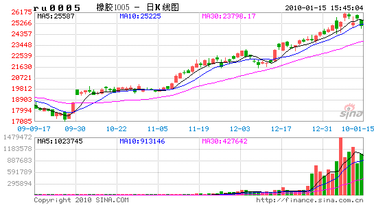 橡膠市場也不例外,從滬膠日膠全年走勢圖上來看,滬膠指數(shù)從年初的11484元/噸到年末收盤24212元/噸,日膠指數(shù)從年初147.3日元到年末272.7日元,兩者均有較大漲幅,上漲幅度超過100%�;仡�2008年末2009年初,各國相繼出臺經(jīng)濟(jì)刺激計劃以拯救全球經(jīng)濟(jì),防止經(jīng)濟(jì)進(jìn)一步下滑,受此影響商品市場出現(xiàn)反彈,滬膠也在2月沖至14000元高點,然后經(jīng)過了近一個月的調(diào)整,3月份下旬在收儲價支撐及產(chǎn)業(yè)振興計劃的刺激下再次拉升沖至16000元附近遇阻,再次調(diào)整;經(jīng)過3個多月的時間終于突破16000元阻力,繼續(xù)上漲,最高沖至19566元回落調(diào)整,也是受9月份中美輪胎特保一案影響,膠價最低回落至16742元;進(jìn)入第四季度后,在國家的政策支持、全球天膠產(chǎn)量下降、資金推動等因素支撐下,膠價得以再次回升,滬膠指數(shù)屢創(chuàng)新高,年內(nèi)以最后一個交易日創(chuàng)出的24256元完美收官。