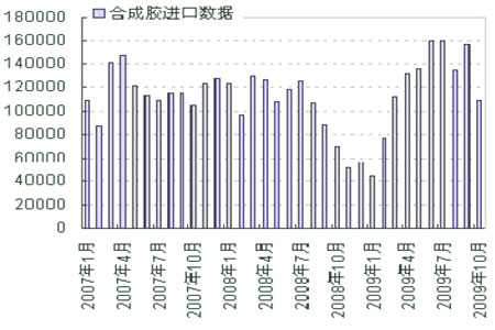 中國今年預(yù)計進口 950,000 噸合成橡膠,較去年大漲 70.6%。根據(jù)國際橡膠研究組織的一位高層人士周二稱,中國今年合成橡膠進口量已經(jīng)增加逾一倍,因受合成橡膠進口零關(guān)稅因素影響。由于合成橡膠的關(guān)稅低于天然橡膠,近年來合成橡膠的進口數(shù)量有所增加。合成橡膠中含有 99%的天然橡膠,盡管價格略高,但中國的進口關(guān)稅僅為5%,而天然橡膠則為 20%。中國主要從馬來西亞、泰國、印尼和美國進口合成橡膠。 這種需求替代的影響已經(jīng)在 2009 年的橡膠市場顯現(xiàn),預(yù)計這種替代關(guān)系在 2010年的國內(nèi)供求中會體現(xiàn)得更加明顯。