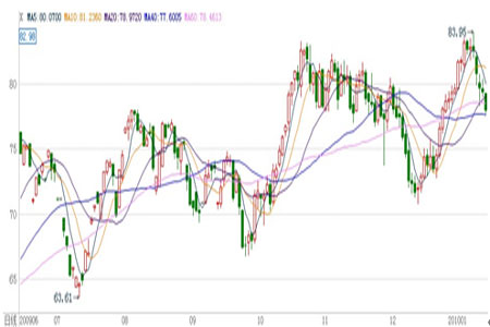 本周國際原油走出五連陰行情,價格大幅回落。天氣預報預計寒流減弱,美國近期氣溫將逐漸回升,取暖油需求或將從高峰逐步回落,對油價形成利空。最新數據顯示,美國原油和成品油庫存全面增長且增幅大于預期,進一步打壓油價。本周公布的美國宏觀經濟數據不佳以及美元匯率上升也打 壓了原油市場氣氛。受上述種種利空因素影響,本周國際原油大幅回調至80美元下方,截至本周五,國際原油報收78美元/桶,比前一周下跌4.75美元。