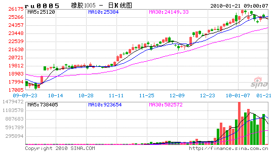 與整個市場的弱勢相比,上海天膠期貨價格全線收高。全日成交1135824手,持倉量增加12488手至245348手。主力5月合約,以25540元/噸高開,盤中窄幅震蕩,以25270元/噸收盤,上漲225元(漲幅為0.90%)。此合約全日成交1042078手,持倉量增加6894手至181660手。