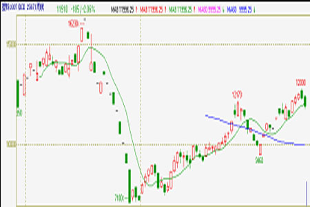 下圖看出,塑料長達1年多的震蕩攀升行情仍在延續(xù),在金融危機最艱難的去年,也沒停止其向上的步伐,盡管中途因油價的大幅調(diào)整而受影響的但在成本支撐下,塑料價格始終在行業(yè)的復(fù)蘇中逐步走出低谷,而初露牛市端倪。相信經(jīng)過最近1月份的調(diào)整走勢后,進一步積蓄動能,為年后的拉升做好能量與時間上的準(zhǔn)備。初步預(yù)計未來兩個月內(nèi)有望挑戰(zhàn)上方14000-15000的強阻力區(qū)域。
