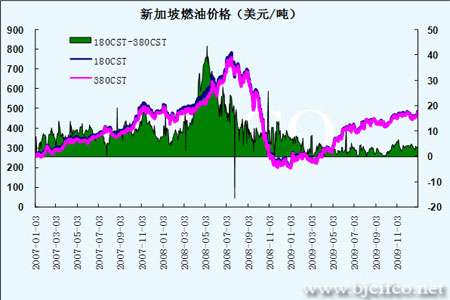 2009年亞洲燃料油的需求形勢總體較好,來自中國、印度、巴基斯坦等國家的需求相對較為穩(wěn)定,新加坡船供燃料油的需求成為亞洲燃料油市場的需求亮點。據(jù)新加坡海事局的數(shù)據(jù)顯示,2009年前10個月新加坡的船供燃料油市場的銷售總量為3032萬噸,同比增長3.4%,隨著新加坡船供燃料油市場的擴大,新加坡的燃料油庫存水平比2008年有所提高。