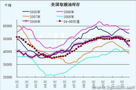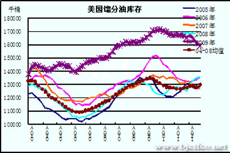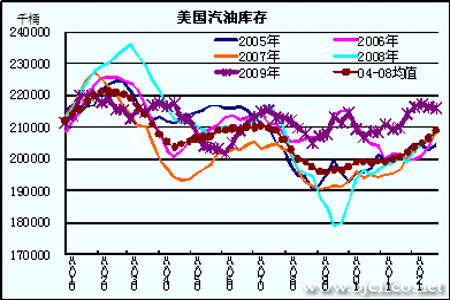 從煉廠開工率看美國的需求,美國在2009年的大部分時間開工率都低于2008年,也是近5年比較低的水平,比過去5年的開工率平均低超過5個百分點,這也暗示了美國原油需求并不甚佳。