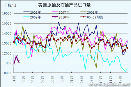 圖為美國原油及石油產品進口量走勢圖。(圖片來源:北京中期)