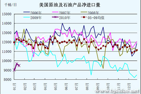 圖為美國原油及石油產品凈進口量走勢圖。(圖片來源:北京中期)