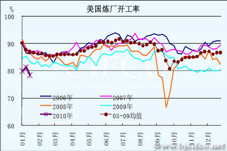 圖為美國煉廠開工率走勢圖。(圖片來源:北京中期)