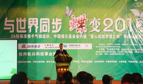 最近大家可能都會關注到哥本哈根會議的無疾而終,關注到電影《阿凡達》引發的中國觀眾的觀影熱潮。作為一部電影,《阿凡達》不僅僅帶來沖擊性的視覺特效,更是因為這部電影“英雄的史詩,悲壯的歌詠,純凈境界的重現”暴露了工業革命的負罪,自然生態平衡的破壞,人類欲望的無止境給人內心帶來的震撼性效果。無疑這部影片將人們對于環境保護的關注帶到了一個高峰。恰恰是在這樣一個大環境背景下,我們今天在這里舉辦“與世界同步蝶變2010”---3A環保漆攜手氣候組織、中國綠化基金會愛心合作伙伴啟動儀式,就顯得尤為有意義。因為,作為一個有著12年歷史的涂料品牌,從創立之初,我們就將"環保"作為企業理念的核心內容,把關注社會公益,重視社會責任,環境責任關懷及做優秀企業公民當作我們企業文化的重要部分;那么今天,能夠攜手起于英國的氣候組織,及中國綠化基金會發起的致力于西部地區貧困及環境改善的百萬森林項目,我們非常榮幸成為行業首家愛心合作伙伴,這將標志著3A環保漆正式邁向企業社會責任及環境責任關懷行動的行列。能與各位合作伙伴一同見證這一時刻,我感到由衷的喜悅。再次對各位所給予的巨大關注表示最最誠摯的謝意!