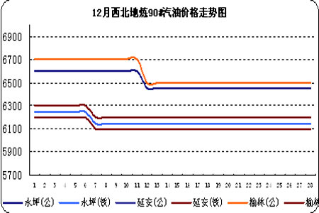 圖為12月西北地煉90#汽油價格走勢圖。(圖片來源:金銀島)