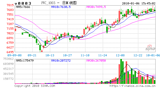 PVC期貨上市至今,半年的行情走勢可以概括為3個階段,第一階段是從6月底至7月底震蕩后PVC開始了大幅度上漲,在8月中旬觸及了8125點的本年新高;第二階段PVC價格開始下跌,并在9月底觸及6500的低點;第三階段行情出現在國慶長假后,PVC又迎來了上漲行情,本次行情的高點達到7790點。