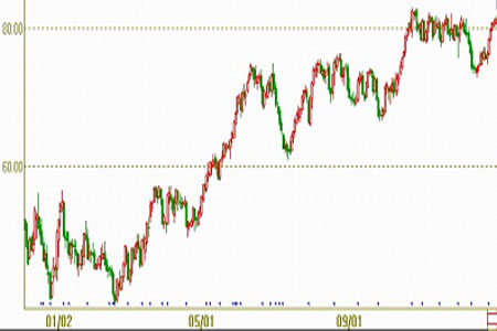 09年國際原油價格年初延續上年跌勢,最低下探至33.98美元/桶,2月中旬開始觸底反彈,全年震蕩上行,年底報收于79.36美元/桶,較2008年12月31日44.60美元/桶上漲34.76美元,漲幅達78%,為自1999年以來最大年度百分比漲幅。