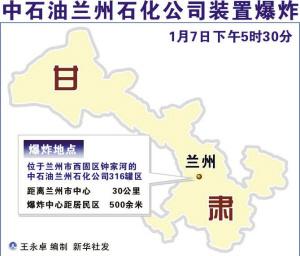中石油蘭州石化廠爆炸地點示意圖