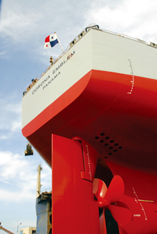 全球第100艘船采用阿克蘇諾貝爾公司含氟聚合物專利不沾污涂料Intersleek ®900,采用該涂料可通過減少塢修次數(shù)、噴砂和維修成本以及涂料用量來達到相應的成本節(jié)約。