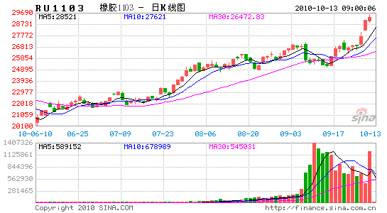 節假后,滬膠連續三個交易日大幅上漲,累計漲幅達9.15%。12日,滬膠1103主力合約報收29335元,上漲2.11%,盤中一度上探至29565元,創下4年多新高,距30000元的歷史高點僅一步之遙。外盤方面,TOCOM橡膠期貨于周二創下自4月19日以來最高價位。